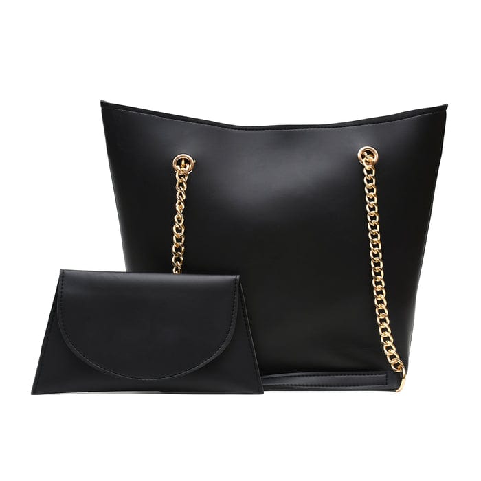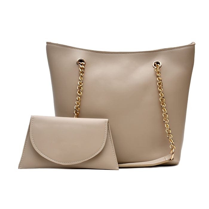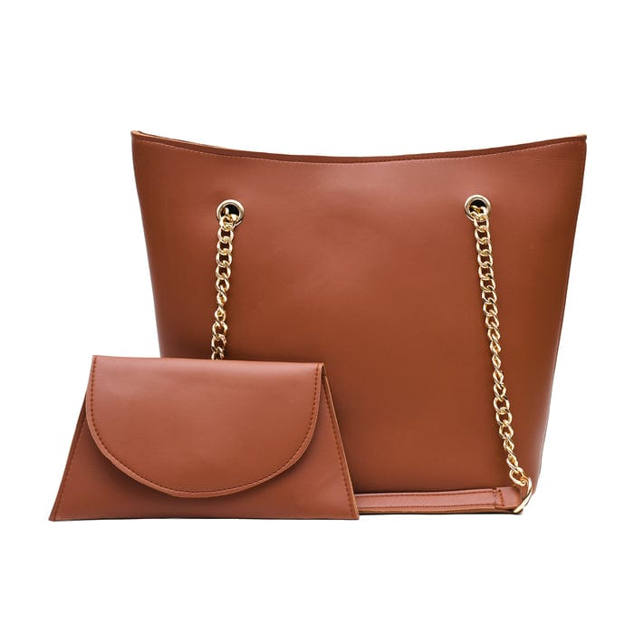 Regular price Rs.4,999.00 Sale price Rs.2,399.00Elevate your daily style with this spacious shoulder bag set. Features a structured design with elegant gold-tone chain handles and a matching envelope pouch for essentials.